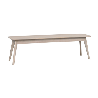 Yumi bænk fra Rowico. En god bred bænk med sine 155 cm, massive ben og i hvidpigmenteret eg. En solid bænk der kan passe ind i de flestes hjem, og har mange anvendelsesmuligheder. Som bænk ved køkkenbordet, ekstra aflastningsplads i soveværelset eller måske bare som bænken i entreen.