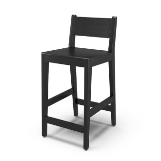 Use counterstol i træ med fodstøtte, use counterstol fås i to højder barstol(høj) og counterstol(mellem). Stolen fås som klarlakeret og i sort, både med polstret sæde, polstret sæde og ryg, samt helt uden polstring.