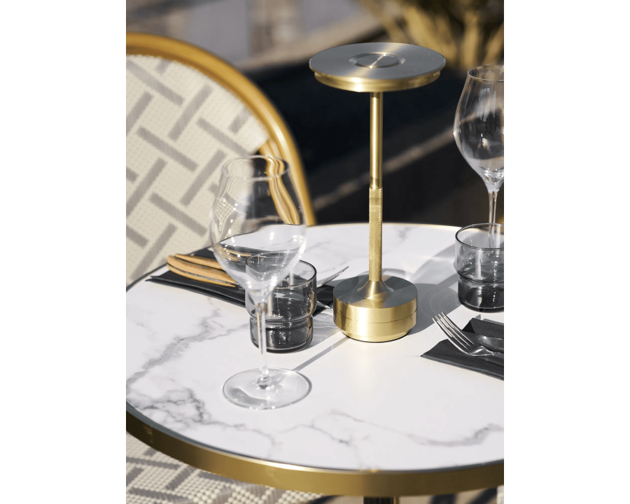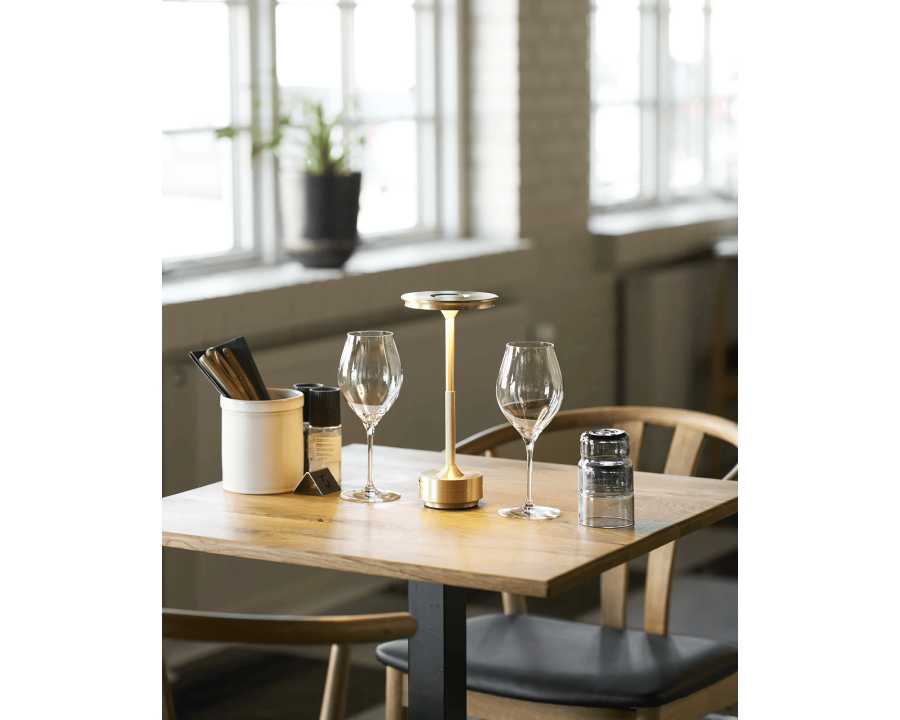 Elegant og genopledelig LED bordlampe i messing med touch lysdæmper og 3 lysindstillinger. Perfekt til restaurant, café, hotel og private hjem. Leveres samlet inkl. USB-C lade kabel.