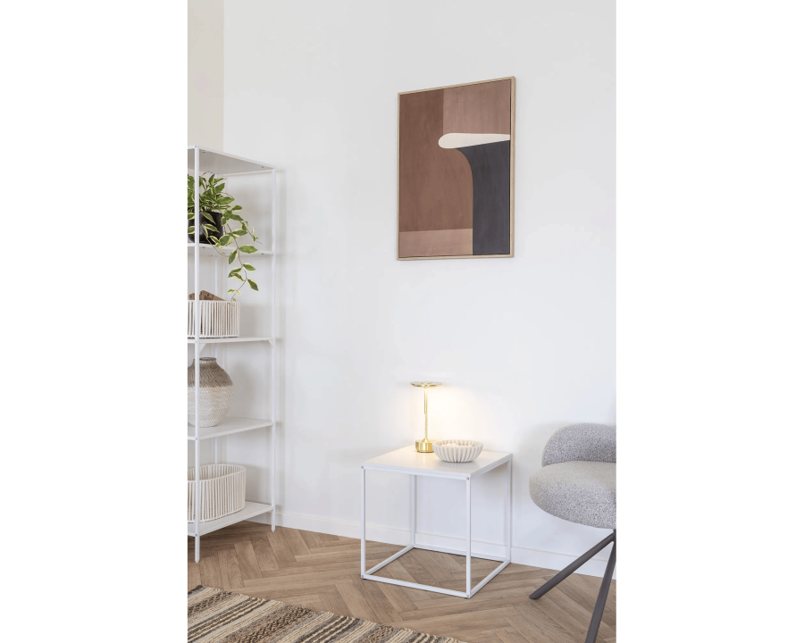 Bordlampen giver stemningsfuld belysning uden faste installationer og er ideel til både serverings- og loungemiljøer. Den intuitive lysdæmper gør det nemt at skifte mellem tre lysindstillinger - varmt lys, koldt lys eller en balanceret kombination - alt efter stemning og behov.