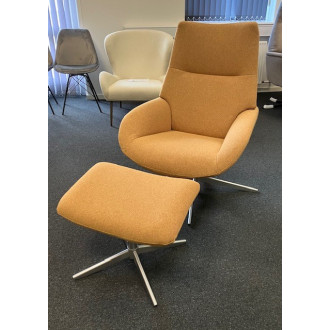 Lotus recliner stol med skammel i en flot varm karry gul tekstil.