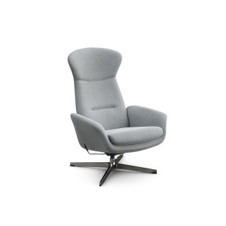 Hvilestolen er med drejesokkel og har en fladvævet stof der er holdbar, stærk og passende, men stadig blød at røre ved.