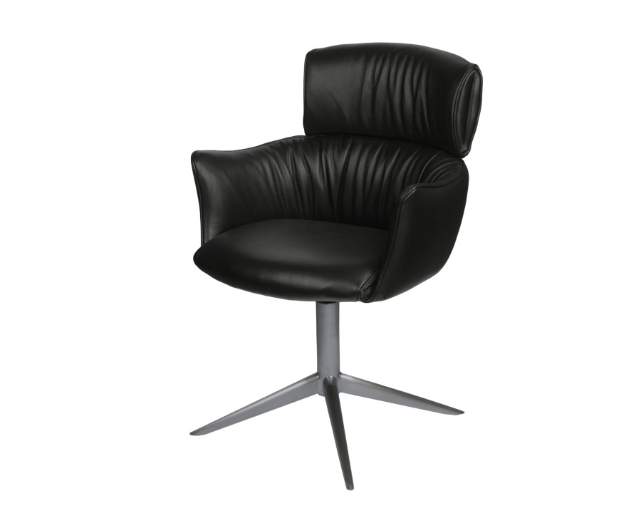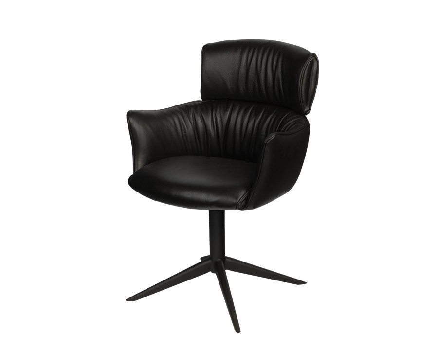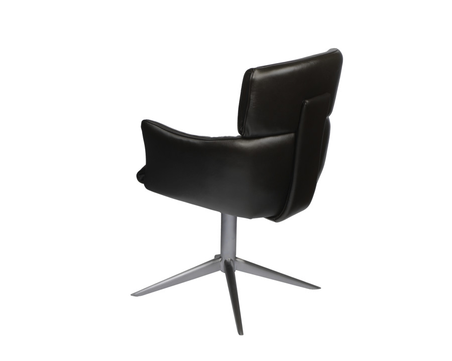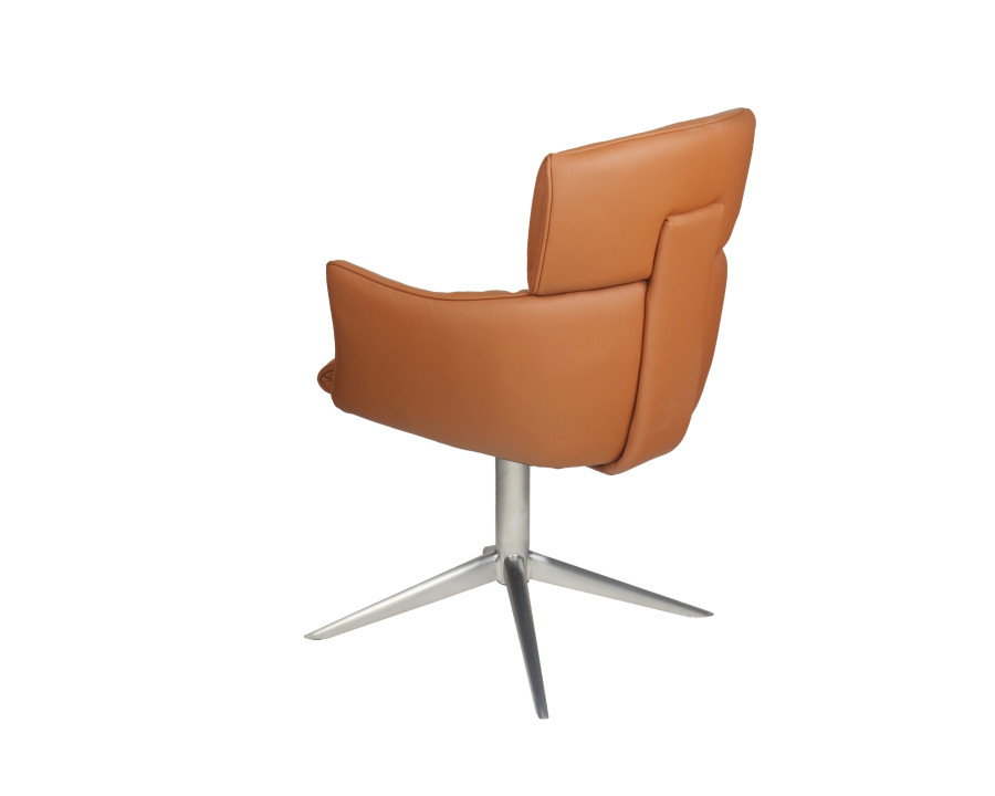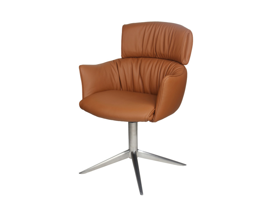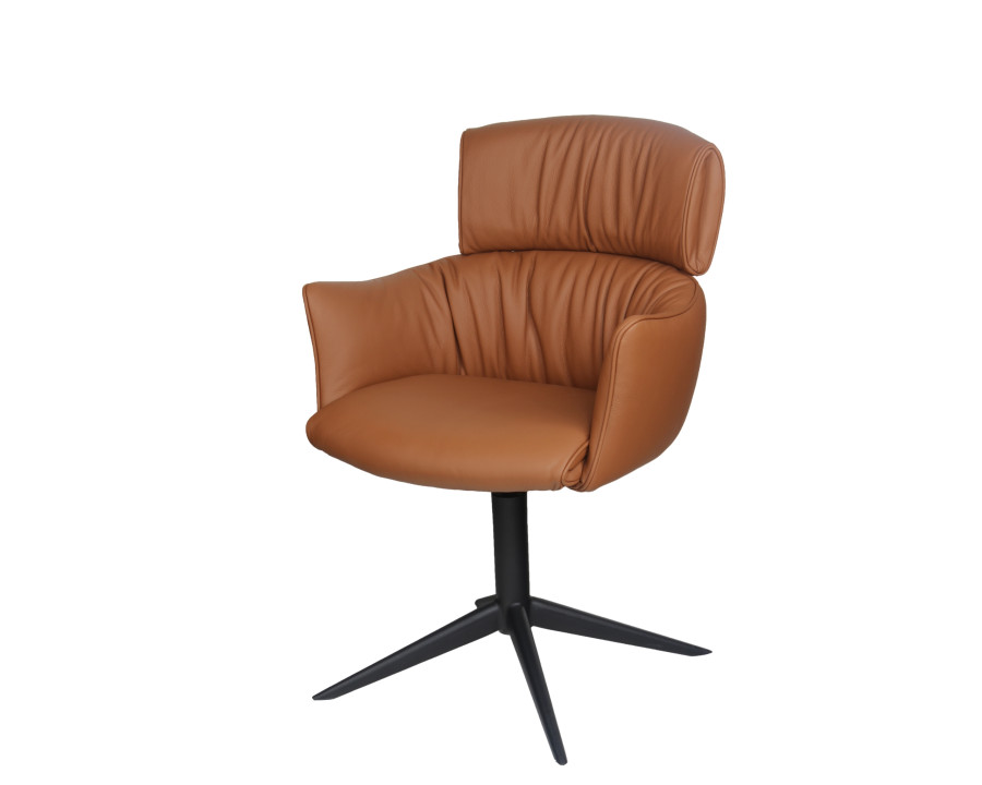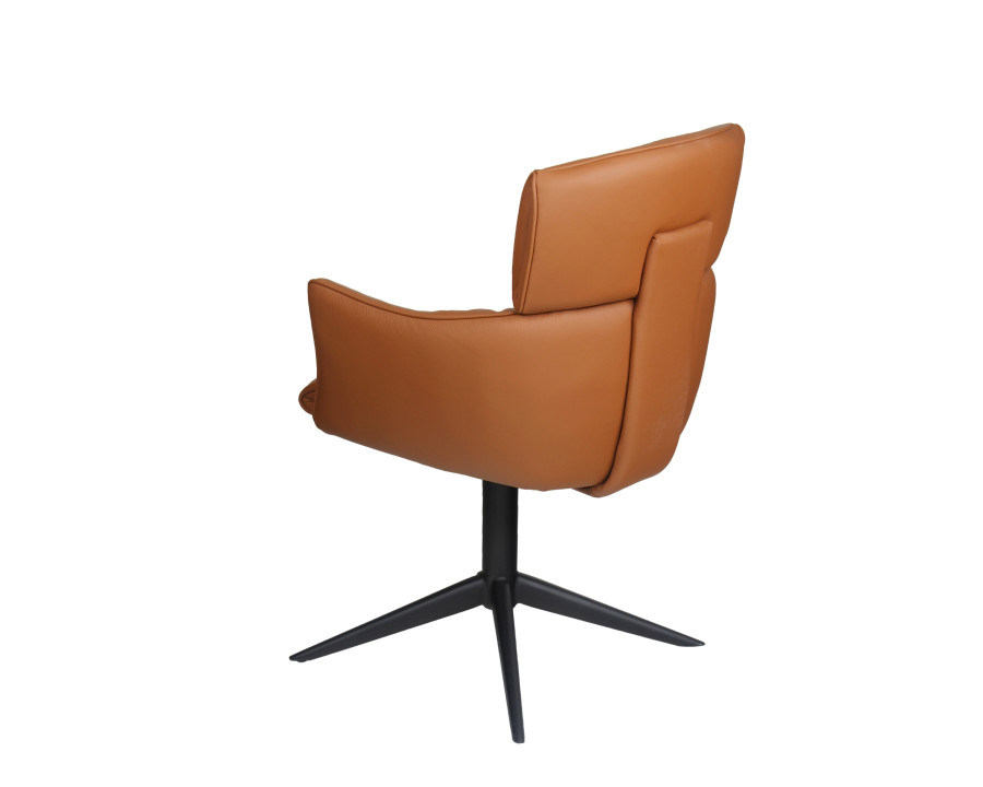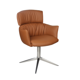 Spisebordsstol model Alfred m/retur drej kombinerer stilfuldt design med høj funktionalitet, hvilket gør det til et oplagt valg til hjemmet. Alfred stolen fås i det elegante sorte eller cognac farvede semianilin læder, der giver et tidløst og eksklusivt udtryk, der passer ind i enhver indretning. Du kan vælge mellem sort eller børstet metalstel. En kombination af kvalitet og æstetik gør dette produkt til et godt valg, både når det gælder holdbarhed og design. Perfekt til dig, der ønsker møbler med både super sidde komfort, funktionalitet og et smukt udtryk.