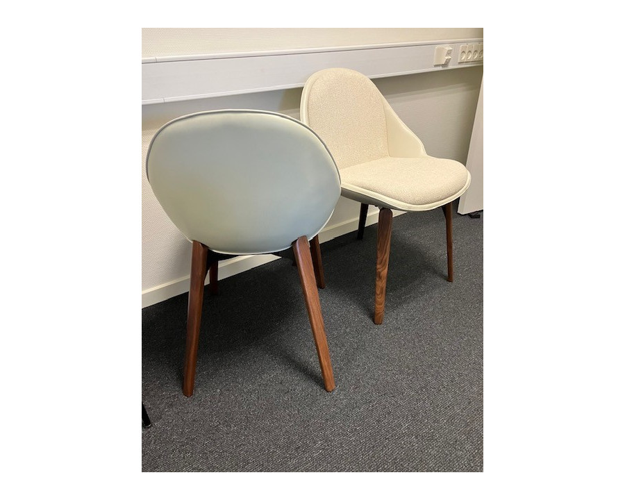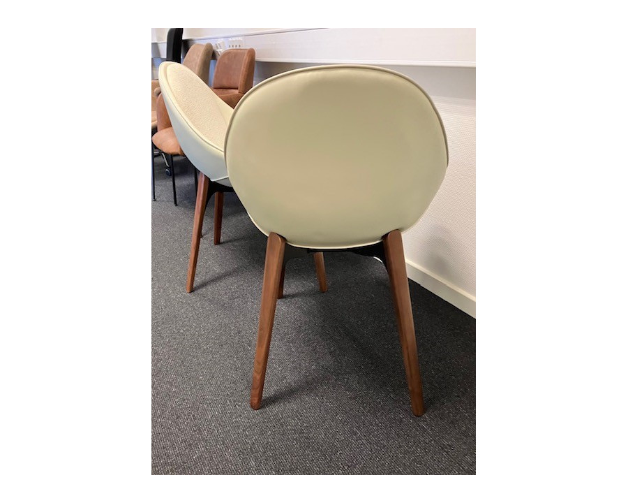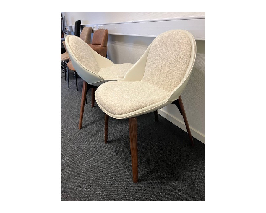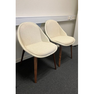 ARCH stolen er udført i tre materialer, træstel i eg, en dejlig hvid boucle stof og hvid kunstlæder. Spisestuestolen er designet med en kunstnerisk afrundet ryg, der fortsætter ind i sædet som en åbnet muslingeskal; indbydende og tilbyder en behagelig siddeplads. Sædet er monteret på et metalstel med stilfulde træben, der strækker sig lidt op ad ryggen, hvilket giver det et unikt og elegant udseende.