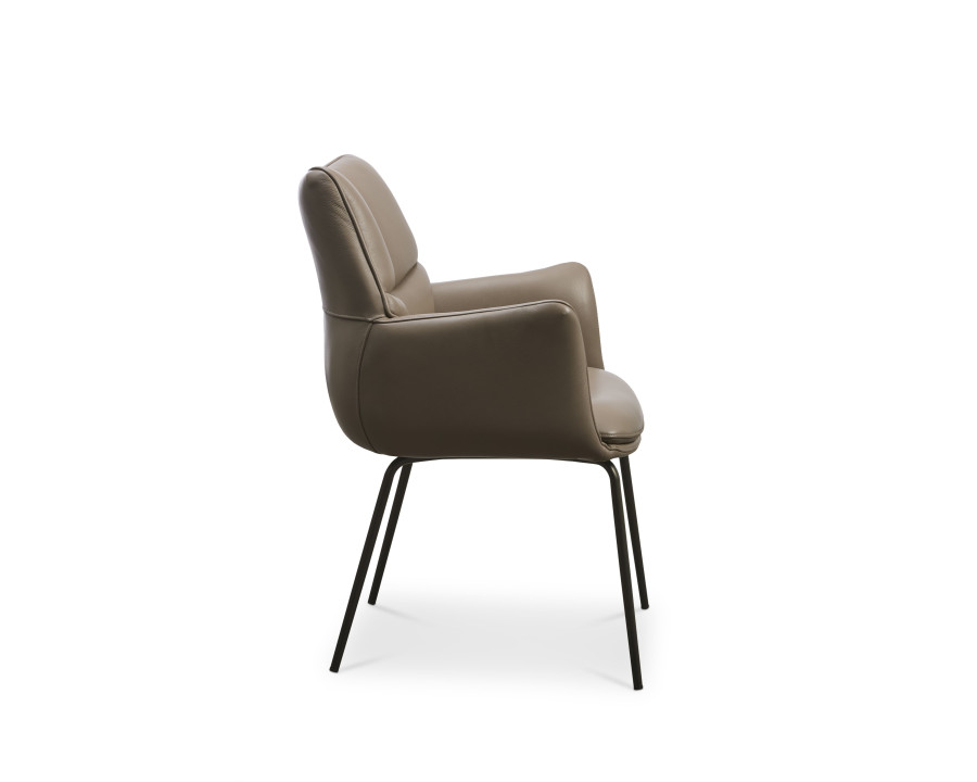 Lily er en flot og elegant spisestuestol med et stilfuldt og moderne look. Siddekomforten er i top med en meget blød og behagelig polstring. Desuden har Lily spisestuestolen et alsidigt, smart og tidløst design med et klassisk look med fast rammestel med 4 ben i brun/sort metal. Stolen er i lækker semi anilin nougat læder og fås også i to andre udsøgte betræk varianter hvor du kan vælge imellem Onyx Black Bull microfiber eller sort læder. Komfort, eksklusivitet og funktionalitet i et, der indbyder til at du vil blive siddende længere tid ved bordet.