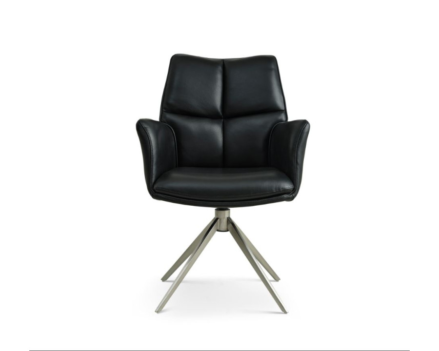 Lily er en flot og elegant spisestuestol med et stilfuldt og moderne look. Siddekomforten er i top med en behagelig polstring. Desuden har Lily spisestuestolen et alsidigt, smart og tidløst design med et klassisk look med fast rammestel med 4 ben i sort metal. Stolen fås i tre udsøgte betræk varianter hvor du kan vælge imellem Onyx Black Bull microfiber, nougat læder eller sort læder. Komfort, eksklusivitet og funktionalitet i et der indbyder til at du vil blive siddende længere tid ved bordet.