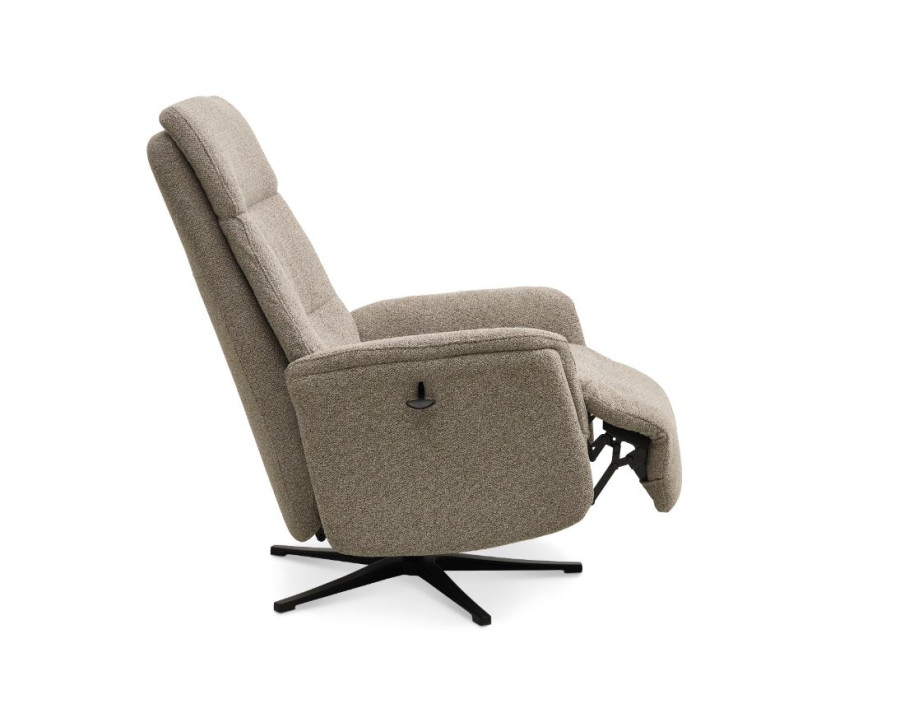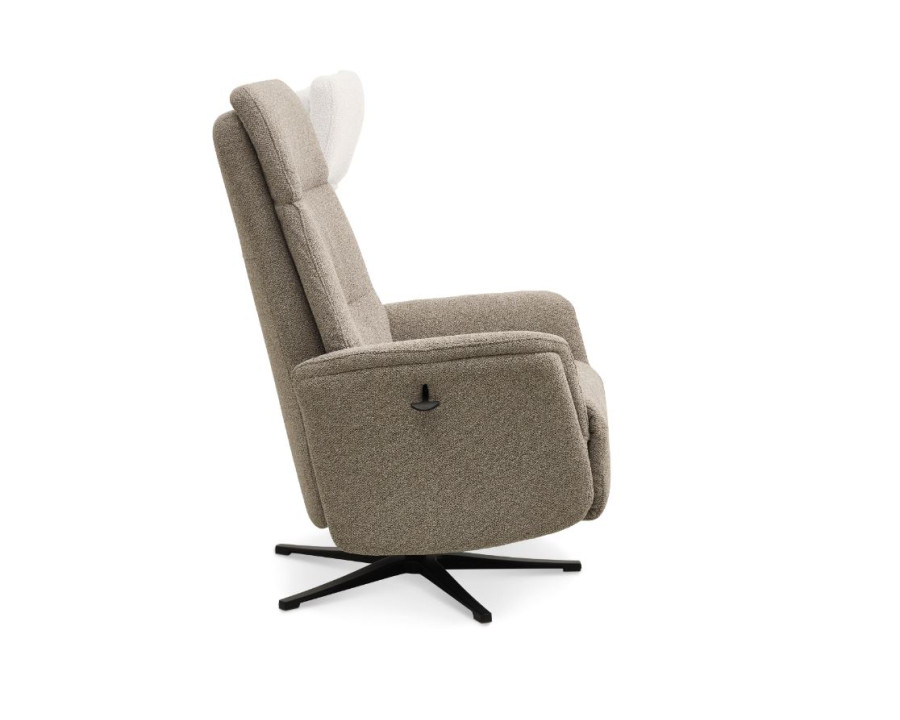 Malthe lænestol med indbygget fodhviler giver en dejlig sidde- og hvilekomfort. En funktionel stol der samtidig er lavet i et stilrent og tidløst design som passer perfekt til hjemmet. Stolen er i en lækker blød vista stof i farven mushroom. Lænestolen har 280 graders drejefunktion og er med en sort metal stjernefod. Desuden fås lænestolen også i semi-anilin læder i farven sort eller cognac.