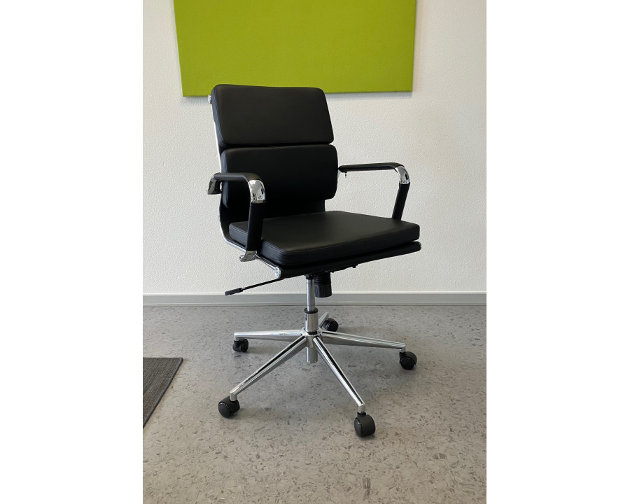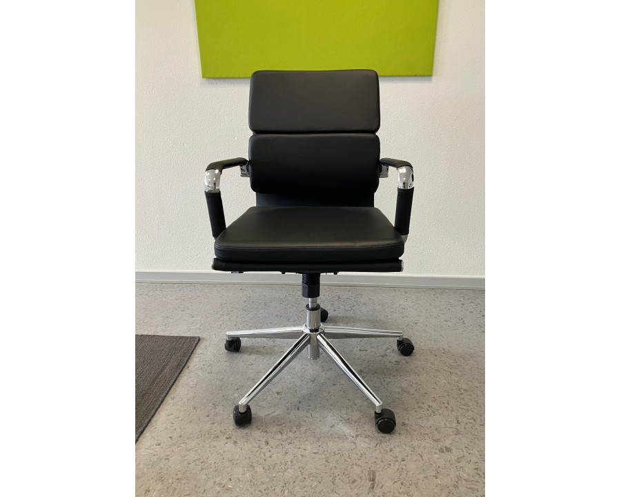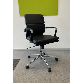 Sevilla er en flot og stilfuld møde/kontorstol. En utrolig elegant stol der kombinerer stil og komfort. Stolen har en lav ryg med en 2 delt polstring der er med til at give en god støtte og behagelig siddekomfort. Stolen har højde justering og vippefunktion. Sevilla stolen har et flot krom stel og er polstret med slidstærkt og rengøringsvenligt sort kunstlæder, også på stolens armlæn. Desuden er stolen designet med en smart gribebøjle på stolens bagside der gør den er nem at flytte rundt med.