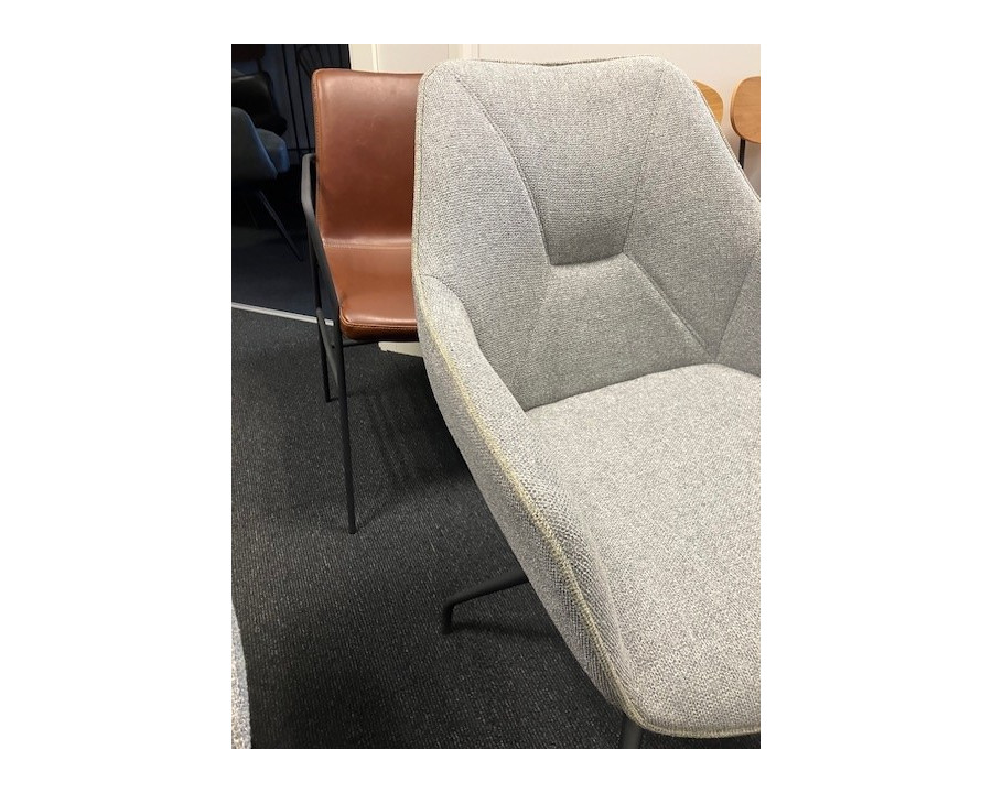 Wexford er en moderne spisebordsstol med elegante sorte metal ben og grå polyester stof der passer godt ind i de fleste hjem.