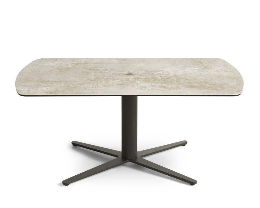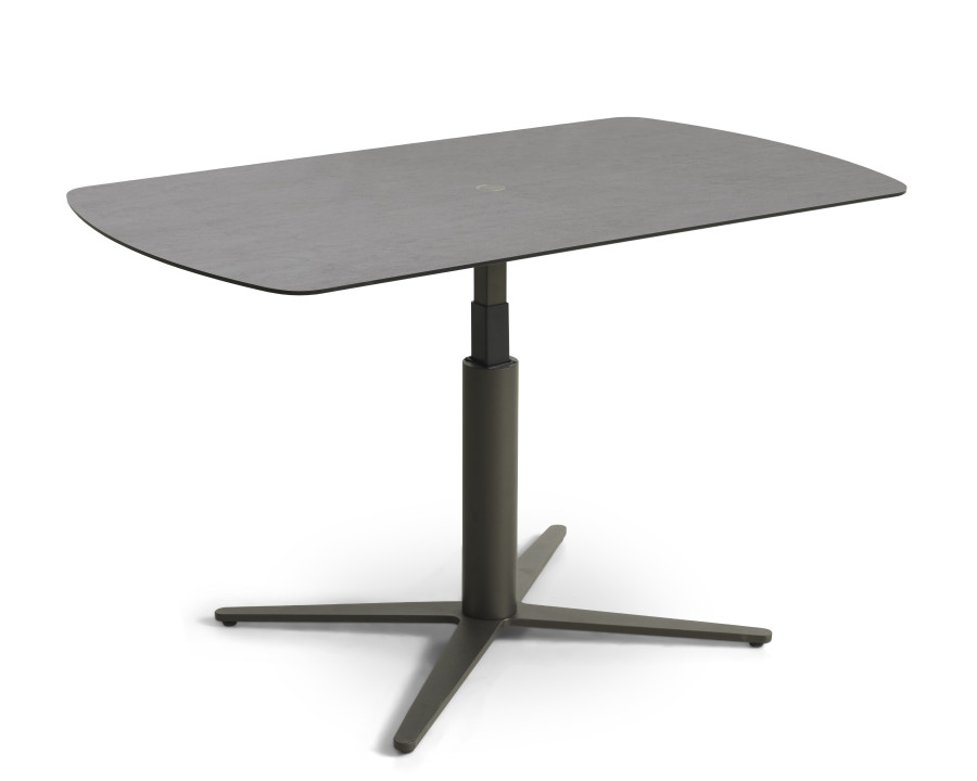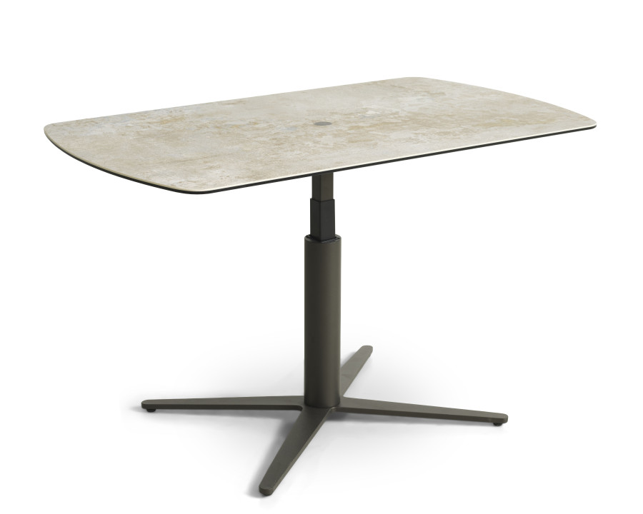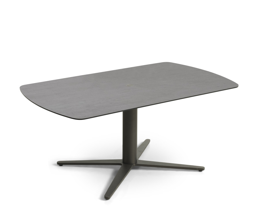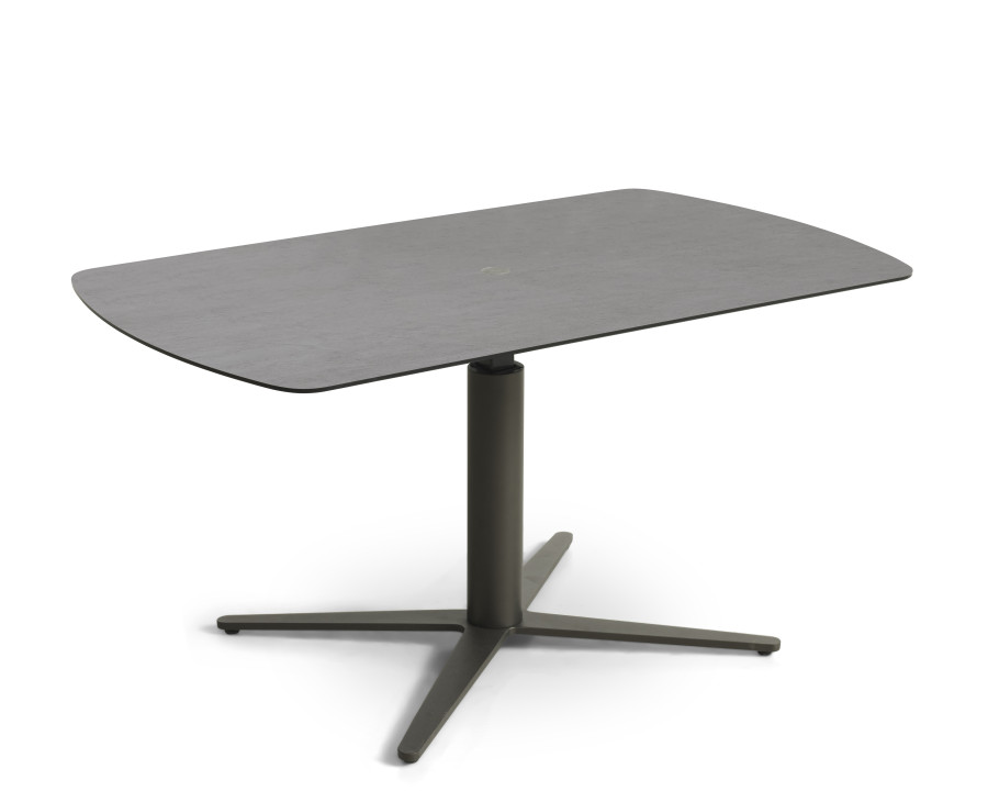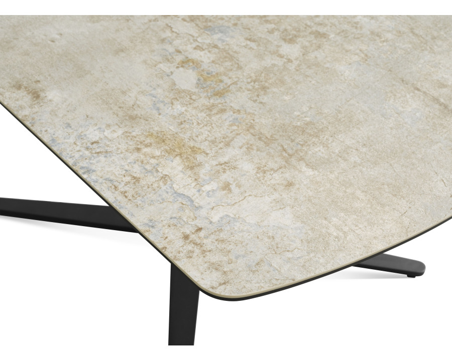 Den keramiske bordplade er elegant, slidstærk og nem at holde ren, den fås i farverne Taupe eller Antracit grå. Stellet i sort metal eller Anodic brun giver et roligt og moderne udtryk, der passer smukt ind i de fleste hjem.
