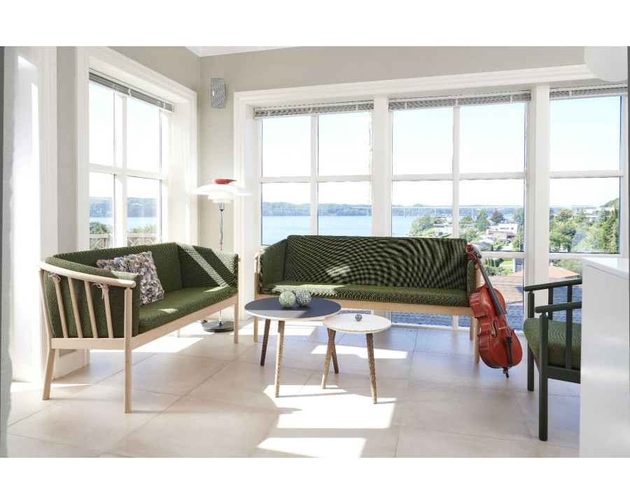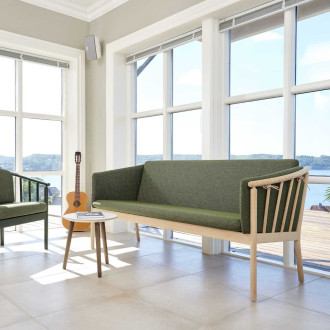 Sofaen fås som 3 pers eller som 2 pers. Stellet fås i Bøg eller eg i adskillige varianter.