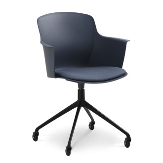 Mia spisebordsstolen er smukt designet og kombineret med god siddekomfort. Stolen er moderne, trendy og smart og kan passe ind i de fleste hjem. Men også til kantiner, venterum eller konference/ undervisningslokaler m.m. er stolen velegnet. Stolen er med hjul og har 180 graders sort metal drejestel med returdrej. Desuden har stolen et plastsæde med høj bøjningsstyrke. Armlænene og den polstrede hynde er fastsiddende og gør at du sidder ekstra behageligt. Du kan vælge mellem 5 flotte farver og selv give stolen sit eget look ved enten at vælge med sort stel eller samme farve stel som sæde og ryg. Bemærk denne stol kan også fås uden hjul