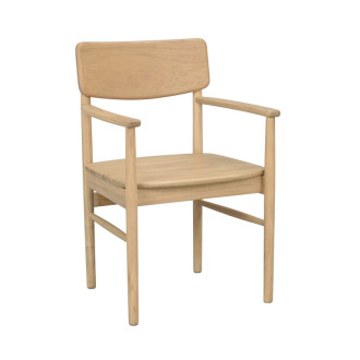Stolen er lavet i FSC certificeret træ. Den er i natur eg og har en lille fordybning i sædet, for at få mere komfort, når du sidder i den og det får du virkelig.