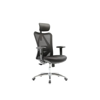Ryglæn er i mesh og sædet er polstret med sort polyester. En kombination som giver en rigtig fin siddekomfort. Den justerbare nakkestøtte er ligeledes i sort mesh.