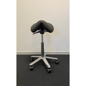 Denne Dynamic 1 sadelstol er den ultimative kontorstol med sadelsæde. Ergonomisk og særdeles komfortabel. Kan anbefales hvor der kræves stor bevægelighed eller, hvor det kan være svært at få plads til benene. For at opnå en sund ergonomi, er det vigtigt at sikre en god bevægelighed, og det sadelformede sæde giver rigtig god støtte og samtidig bevægelsesfrihed. Stolen har et ekstra slidstærkt kunstlæderbetræk som er modstandsdygtig over for de fleste milde syrer, baser, drikkevarer og husholdningspletter
